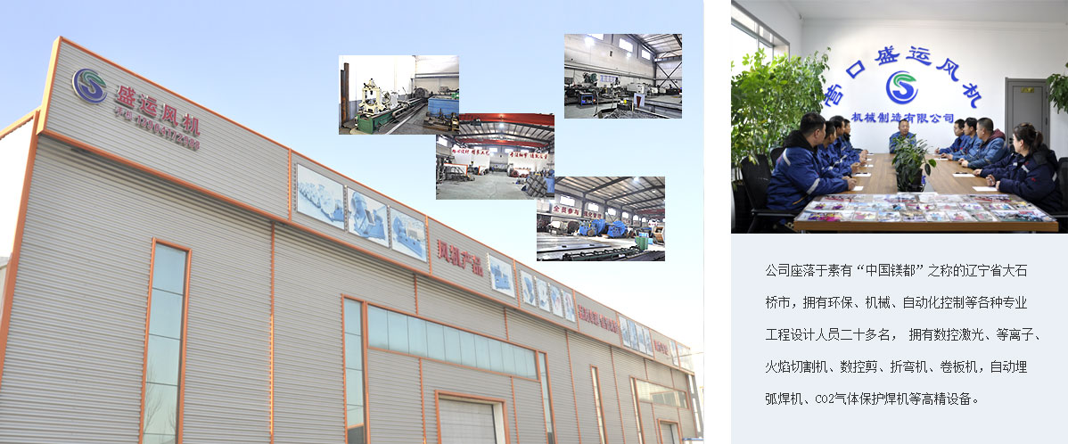 營口盛運風(fēng)機(jī)機(jī)械制造有限公司是一家從事各類風(fēng)機(jī)機(jī)械、除塵系統(tǒng)的研發(fā)、設(shè)計、制造為主的專業(yè)生產(chǎn)企業(yè)。公司座落于素有“中國鎂都”之稱的遼寧省大石橋市,
